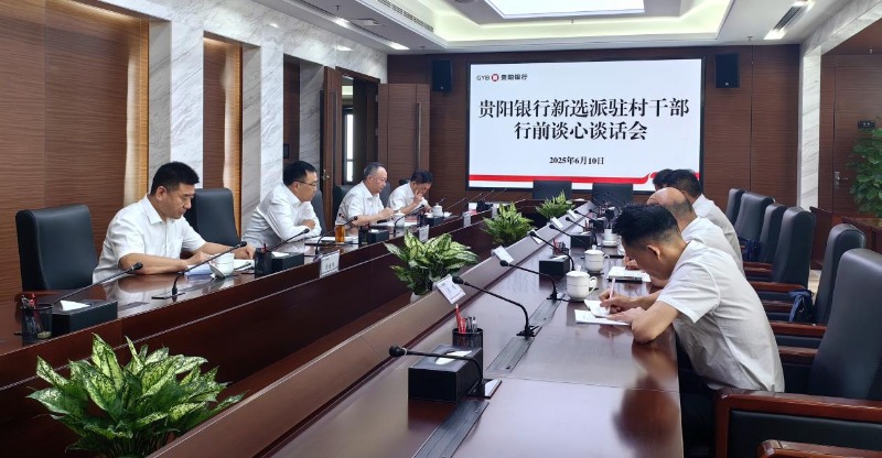 2025年6月10日,贵阳银行召开新选派驻村干部行前谈心谈话会,党委书记、董事长张正海主持会议并讲话。总行机关党委书记、党委办公室主任王重杨,新选派驻村第一书记和驻村工作队员,党委组织部、党群工作部主要负责人参加。