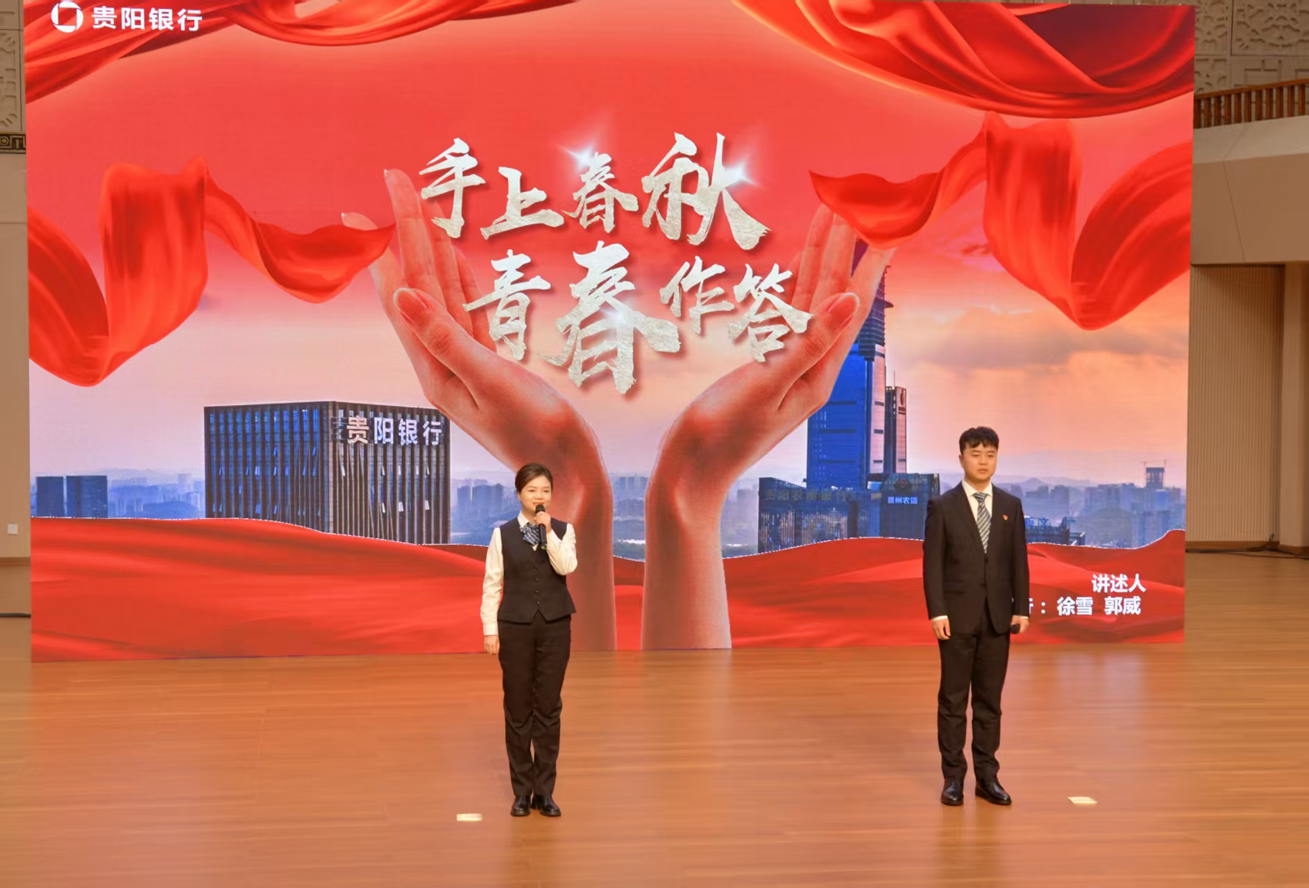 由贵阳银行直属支行徐雪和总行机关郭威组成的宣讲队伍以《手上春秋·青春作答》为题,从“手”这个小切口出发,讲述了银行员工通过一双平凡的手,在一线金融服务中、在支持地方发展中写下的不凡故事,展现了金融青年以实际行动践行初心、担当使命的青春风貌。2位宣讲员配合默契,以真实案例、身边故事让宏大主题具象化、深刻道理生动化,有效增强了理论宣讲的感染力,现场反响热烈。据悉,该作品在贵州省“理论宣传二人讲”“劳模工匠讲 青年职工说”宣讲技能比赛初赛暨贵阳贵安“理论宣传二人讲”展示活动中荣获三等次。