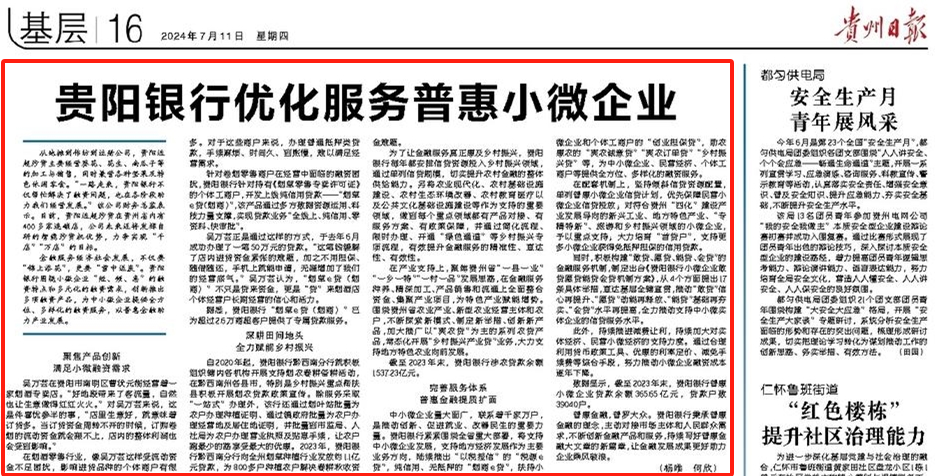 普惠金融,普罗大众。贵阳银行秉承普惠金融的理念,主动对接市场主体和人民群众需求,不断创新金融产品和服务,持续写好普惠金融大文章的新篇章,让金融发展成果更好助力企业乘风破浪、更多更公平惠及全体居民。